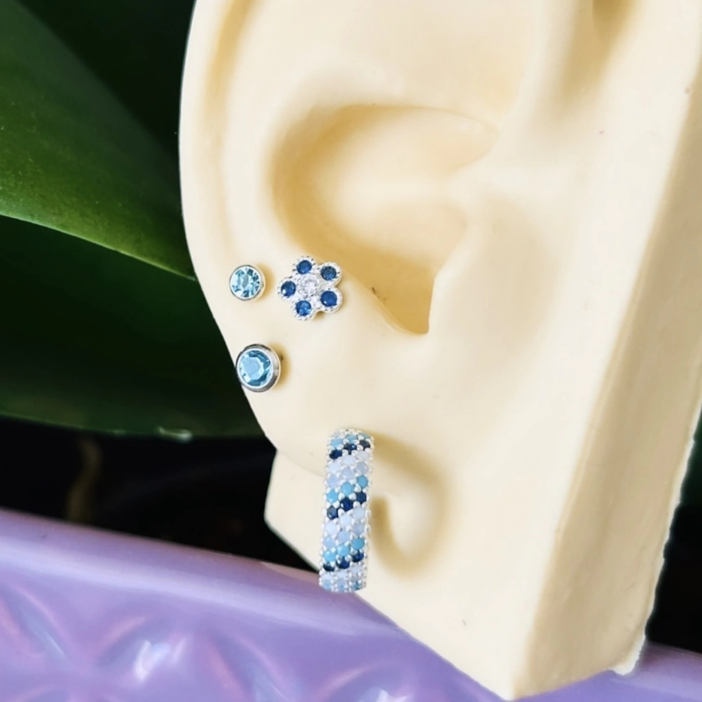 Um delicado brinco pontinho de luz azul, confeccionado em prata 925 legítima e cravejado com zircônias de brilho intenso. Minimalista e versátil, é ideal para uso no segundo ou terceiro furo, podendo ser usado sozinho ou em composições criativas de mix de brincos.